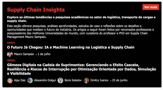 Tecnologística inicia el segundo semestre de 2024 con otra gran novedad en su sitio web. Continuando con la celebración de sus 30 años de excelencia periodística como el portal de noticias más destacado de logística y supply chain en Brasil, y ahora también disponible en toda la America Latina, Tecnologística lanza la sección Supply Chain Insights, explorando las últimas tendencias e investigaciones académicas en el sector de logística, transporte de carga y supply chain. La nueva sección está disponible en portugués y español.