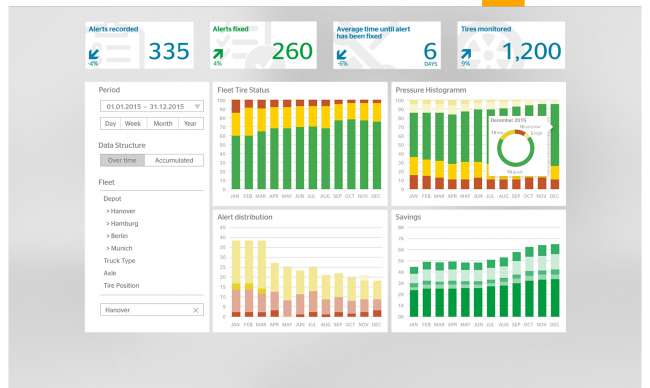 O ContiConnect monitora, analisa e gera relatórios de pressão e temperatura dos pneus de toda a frota com base em dados coletados pelos sensores ContiPressureCheck. O sistema alerta o gestor da frota e oferece medidas corretivas, se necessárias. Um portal on-line fornece relatórios transparentes sobre o desempenho dos pneus da frota e sua eficiência. A partir de seu lançamento no segundo trimestre de 2017, o ContiConnect estará disponível nos principais mercados das Américas, Ásia-Pacífico e Europa.